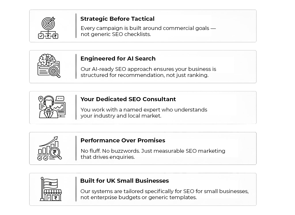 We engineer AI-ready visibility using AI for SEO to position ambitious UK businesses as the recommended choice.